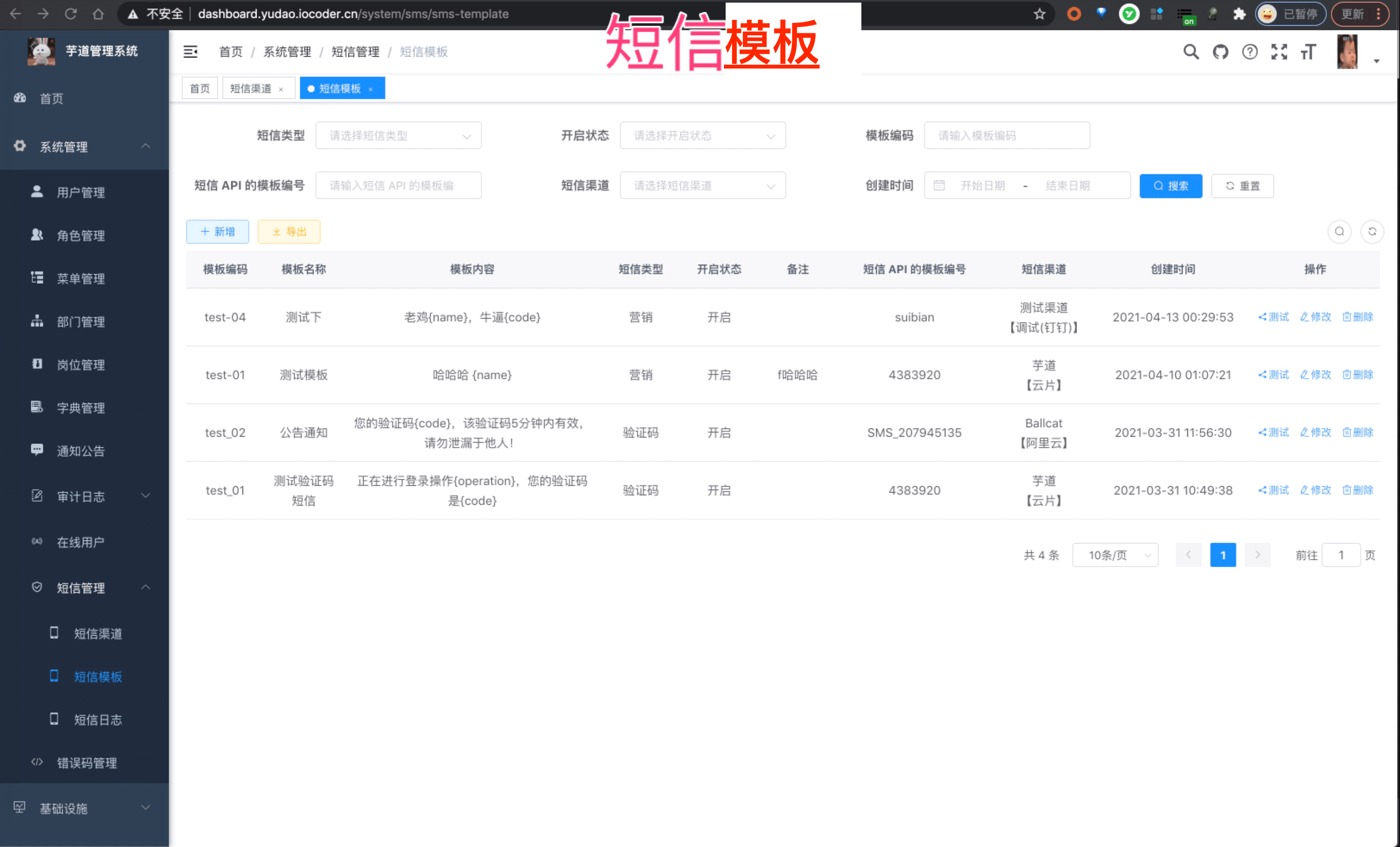 - 演示地址【Vue2 + element-ui】:http://dashboard.yudao.iocoder.cn